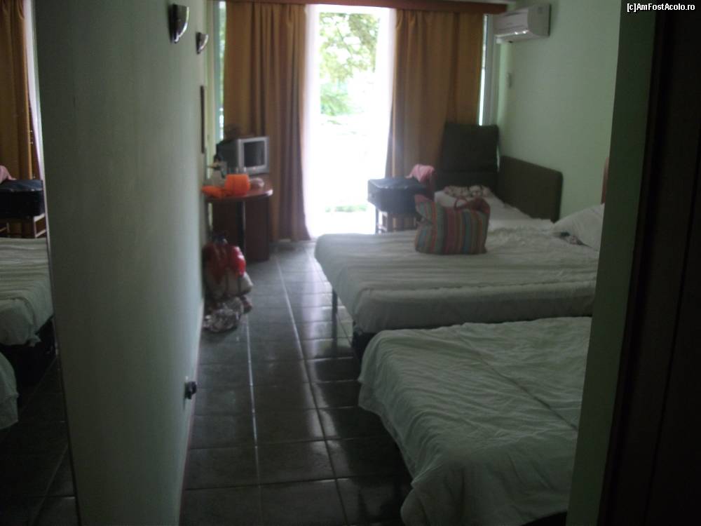 [P09] camera dubla cu 1 pat matrimonial, 1 pat single si un fotoliu extensibil. dupa cum se observa, ieri femeia de serviciu nu a primit bacsis, iar azi a spus pass