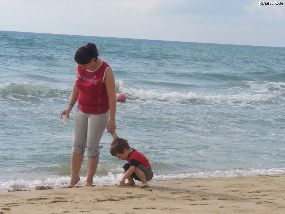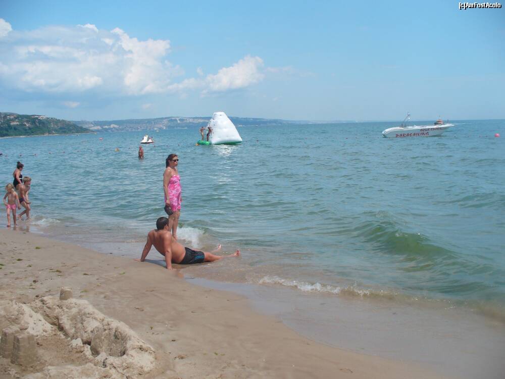 [P46] Nisip si mae. In plan indepartat, piramida gonflabila pe care nu o folosea mai nimeni. 10 lv o ora.