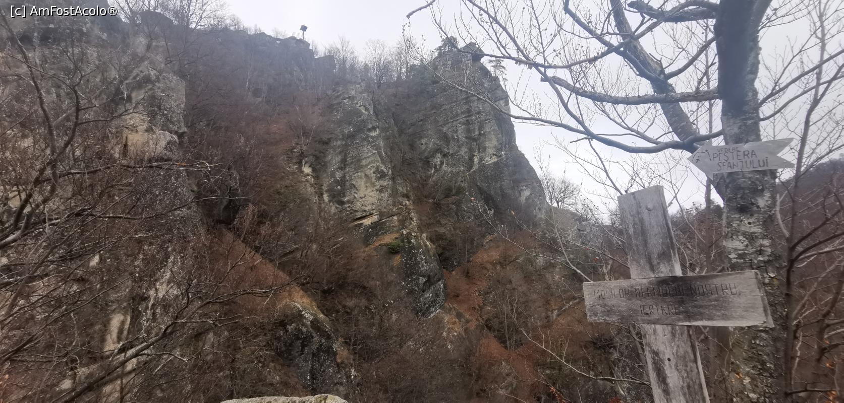 [P45] Peștera Sfântului, la care nu se poate ajunge și Crucea Dorințelor, în spate.