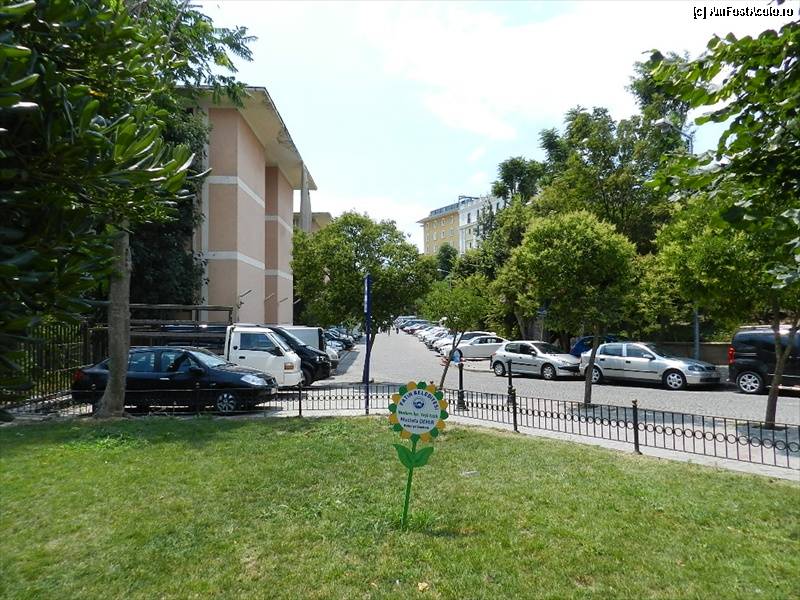 [P10] Imagine din Parcul SultanAhmet, de pe Divan Yolu. Cladirea roz e Palatul Justitiei. Intrarea la BinBirDirek e peste drum de acea cladire. Nu se vede din cauza copacilor.