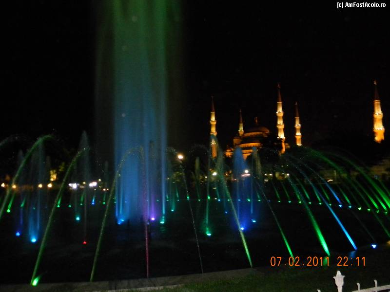 [P32] jocuri de lumini si apa, iar in fundal Moscheea Albastra