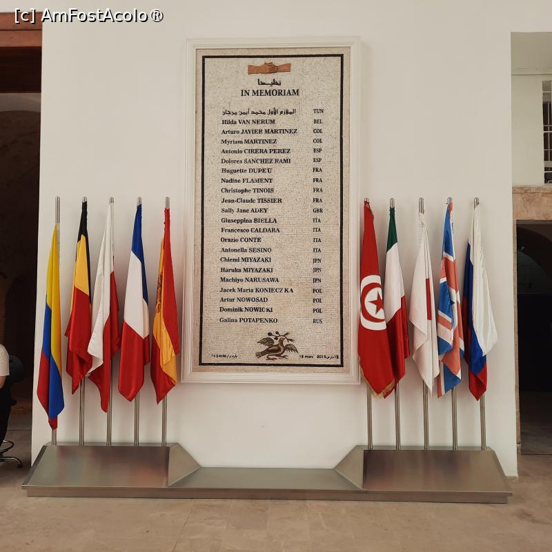 [P11] Tunis, Muzeul Bardo, Holul generos cu două mozaicuri imense, în plan îndepărtat se vede placa cu victimile atentatului terorist