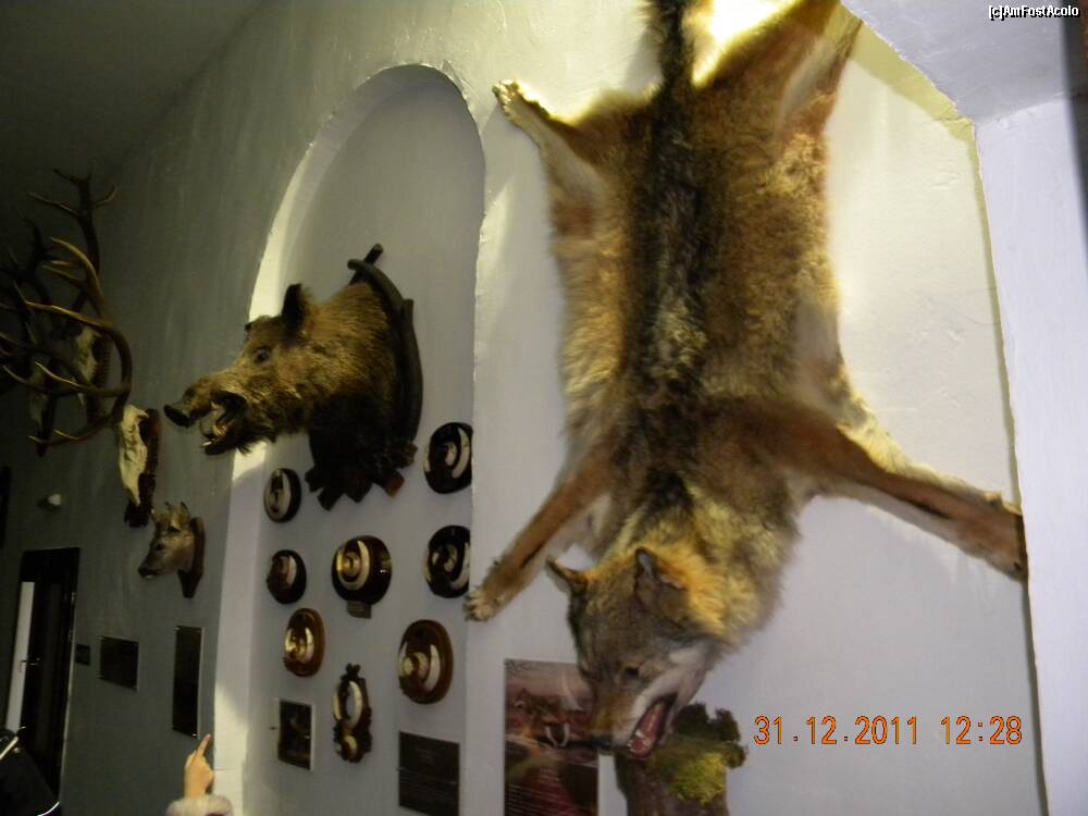 [P02] trofeele expuse- coarne de cerb, colti de mistret, pielea de lup
