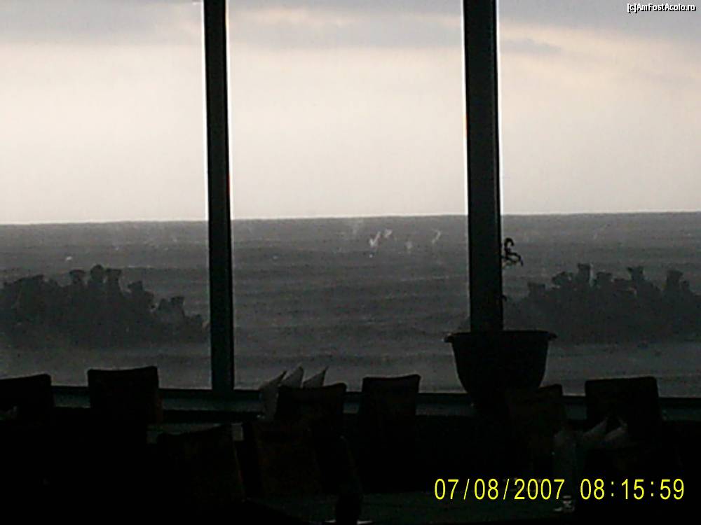 [P07] Poza facuta din restaurant; afara era furtuna si ploua.