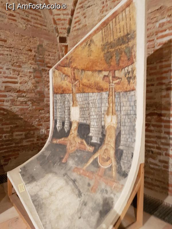[P31] Către finalul vizitei noastre, am coborât la subsolul palatului pentru a vedea fragmente de fresce provenind de la fosta Mănăstire Văcărești.