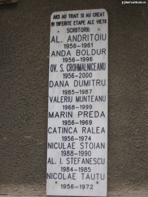 [P17] Placă informativă cu scriitorii ce au locuit pe str. Dionisie Lupu nr. 74