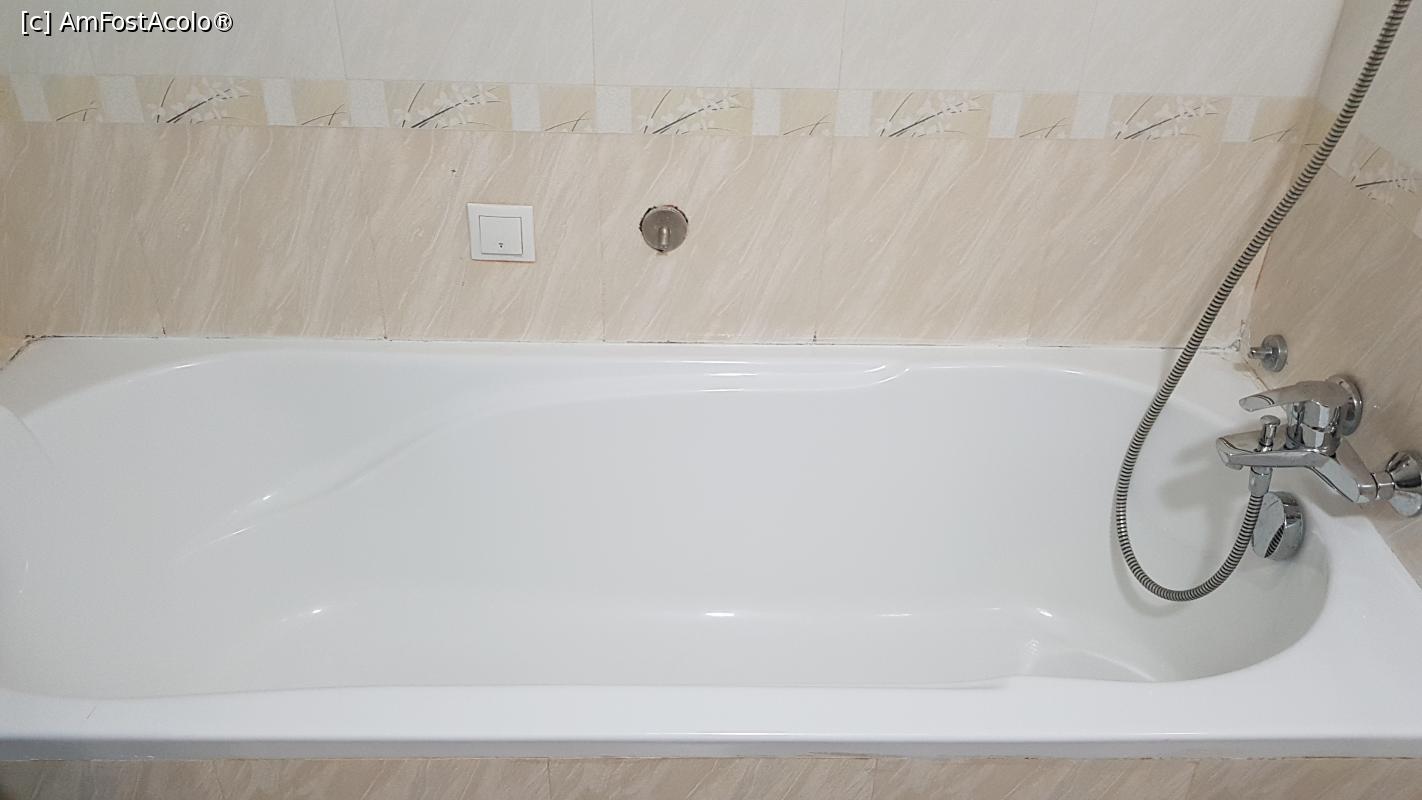 [P10] Baia camerei noastre avea cadă. Apa caldă a avut presiune tot timpul.