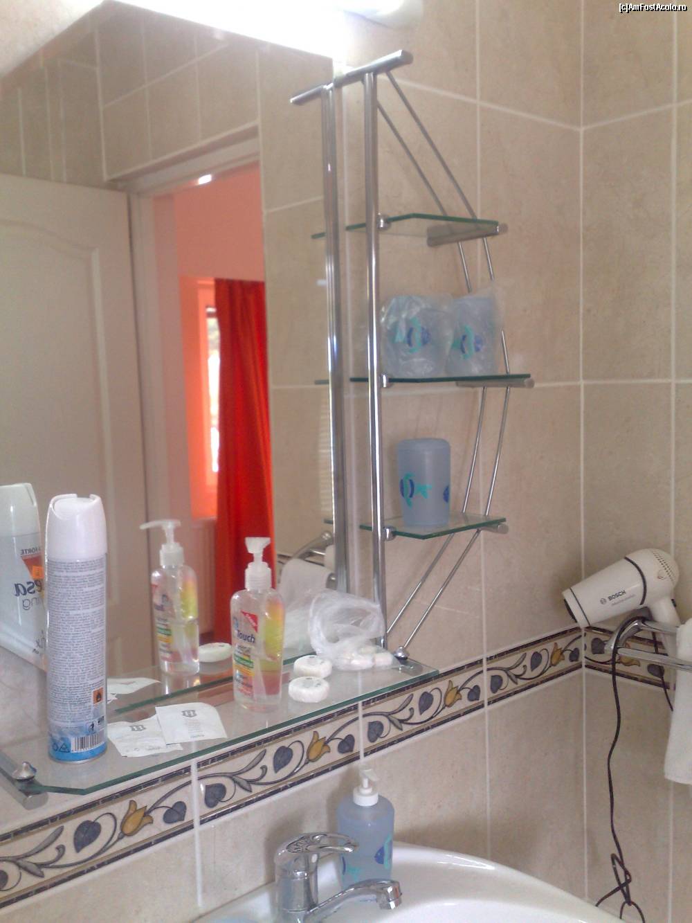 [P12] Oglinda din baie. Mai era una in camera de marimea unui om mediu. La mare aveam o oglinda ,,portabila'' adica o puneai unde reuseai sa o sprijini de ceva.