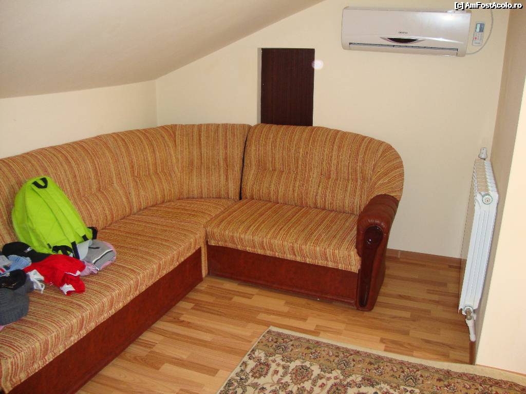[P16] A doua cameră a apartamentului este mai spațioasă. În prima parte a camerei avem un colțar extensibil, dar și aerul condiționat pe care noi nu l-am folosit.