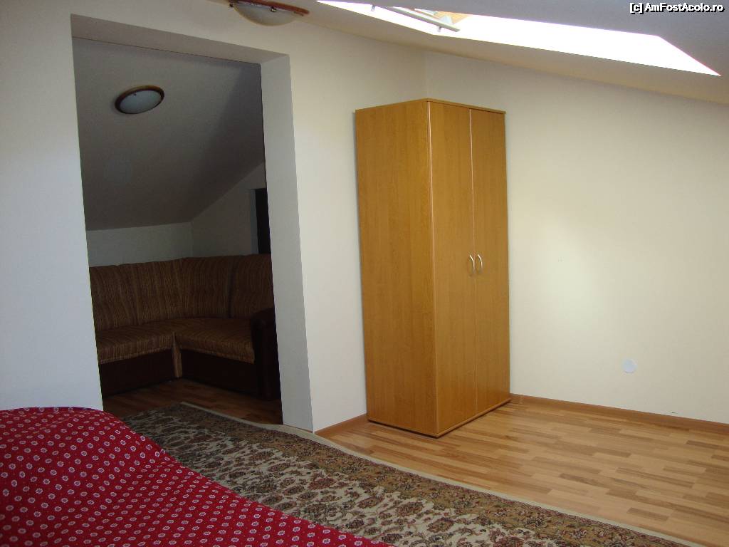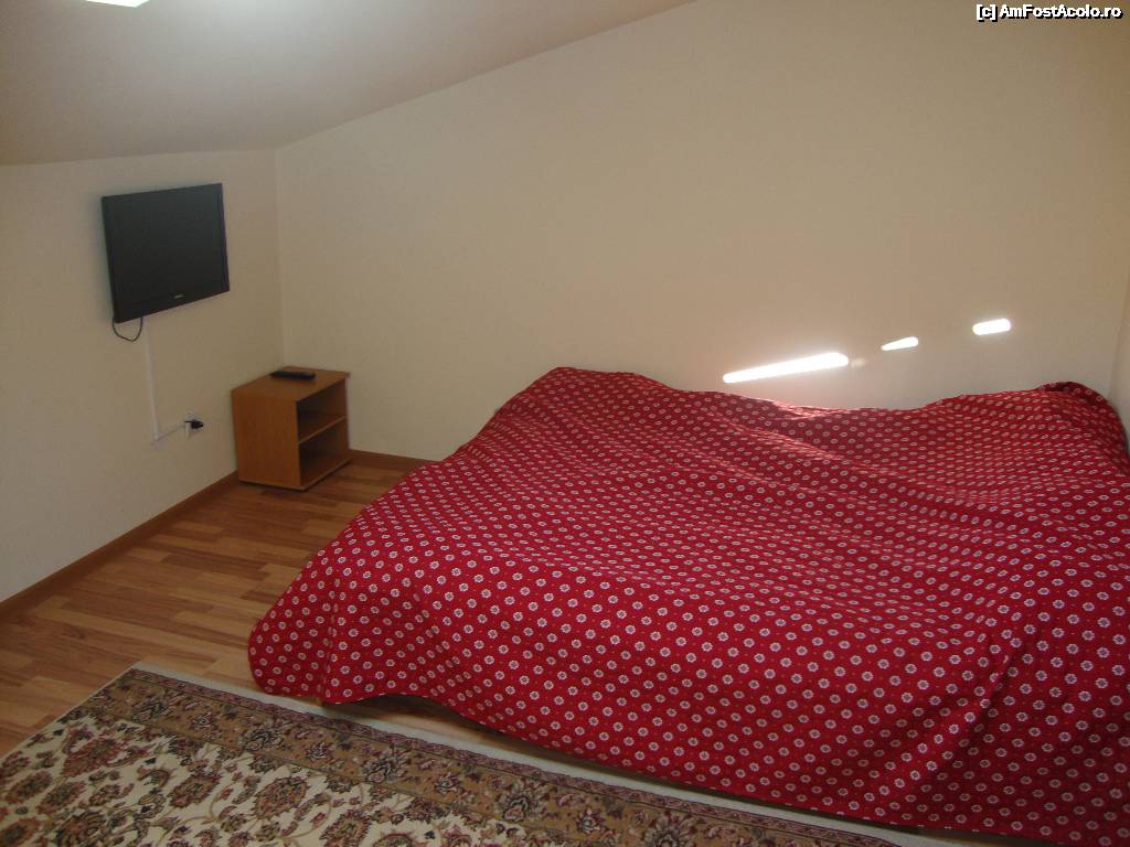[P11] Dormitorul din partea dreaptă, cel fără televizor. Noi nu am fost nemulțumiți de acest aspect, întrucât am avut televizor atât în livingul pensiunii, dar și în cealaltă cameră a apartamentului.