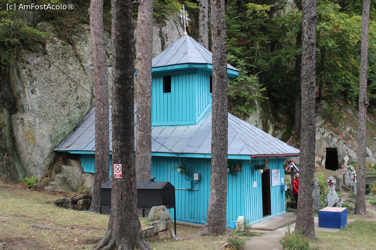 [P24] Aluniș, Județul Buzău, Complexul Rupestru, Biserica din lemn și stâncă, pozată din alt unghi