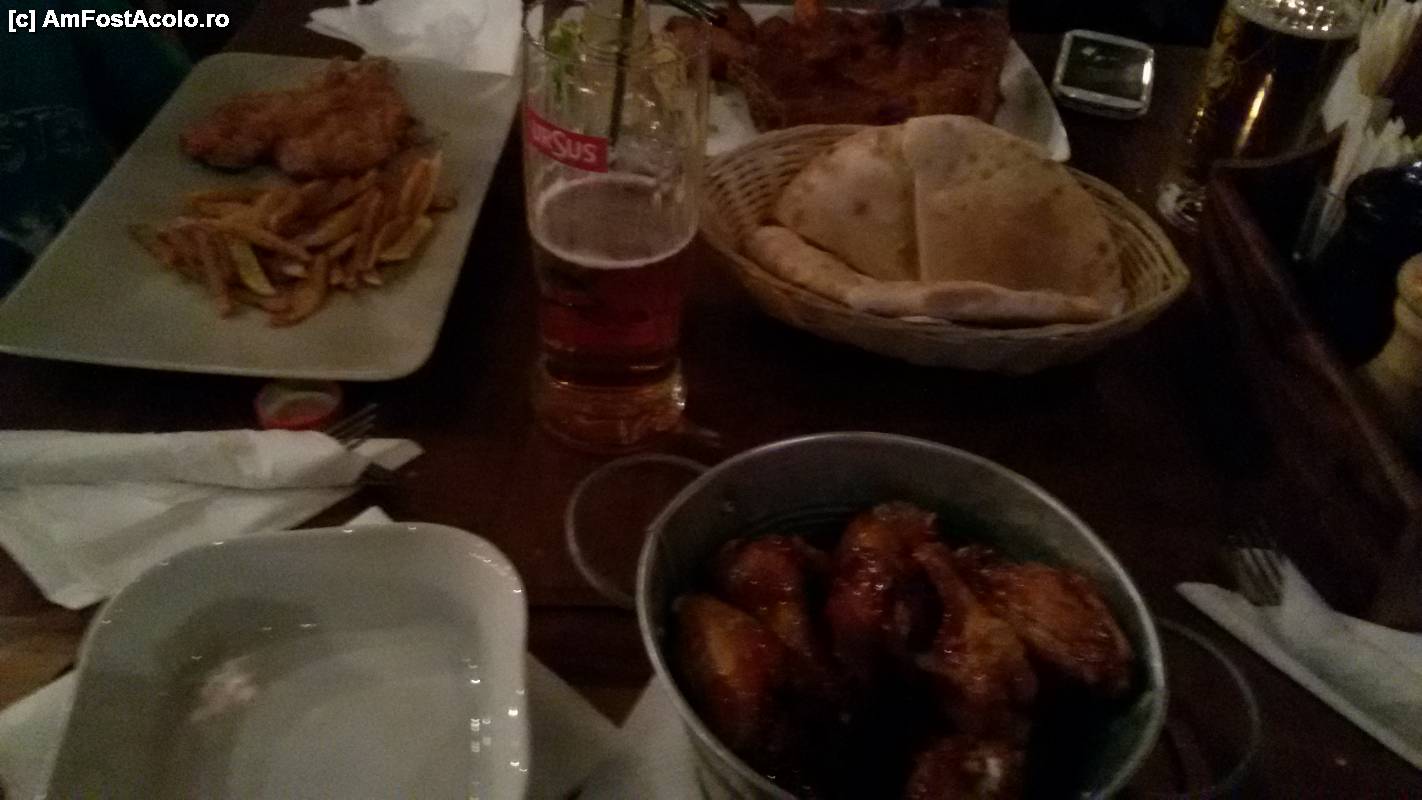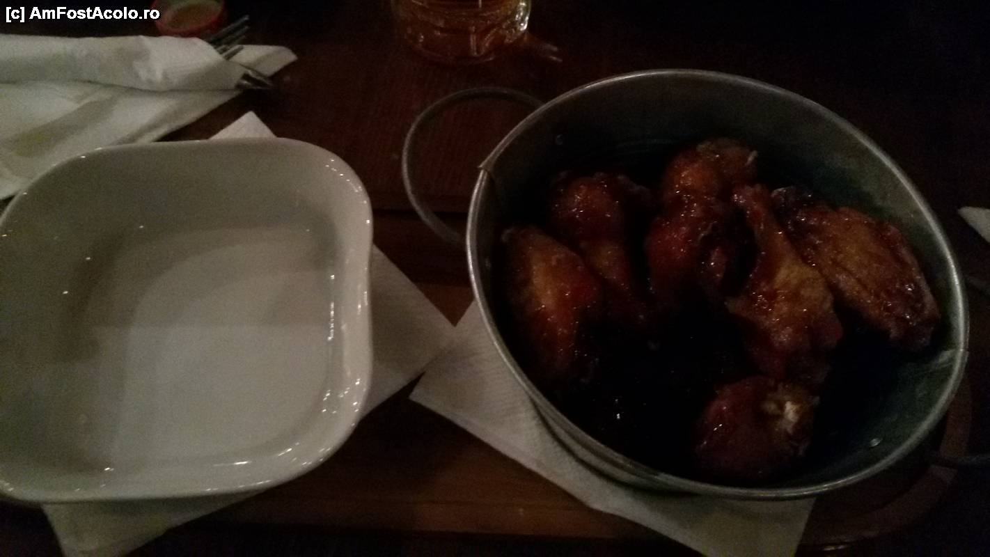 [P12] Eu am comandat aripioare de pui cu sos picant (Yummy!). Mi-a plăcut modul de servire. Porția nu e deloc mică, chiar dacă poate așa pare în fotografie.