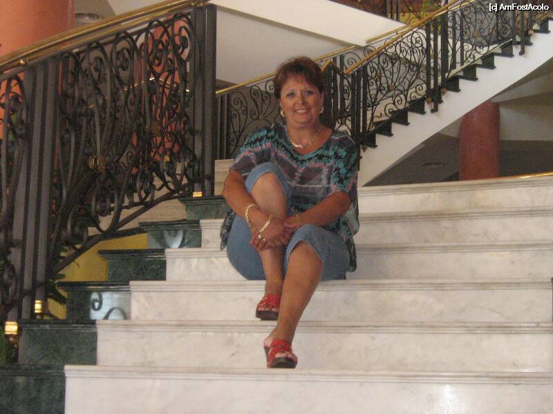 [P03] Scara din holul hotelului Principe Paz, în faţă, în plan îndepărtat, recepţia