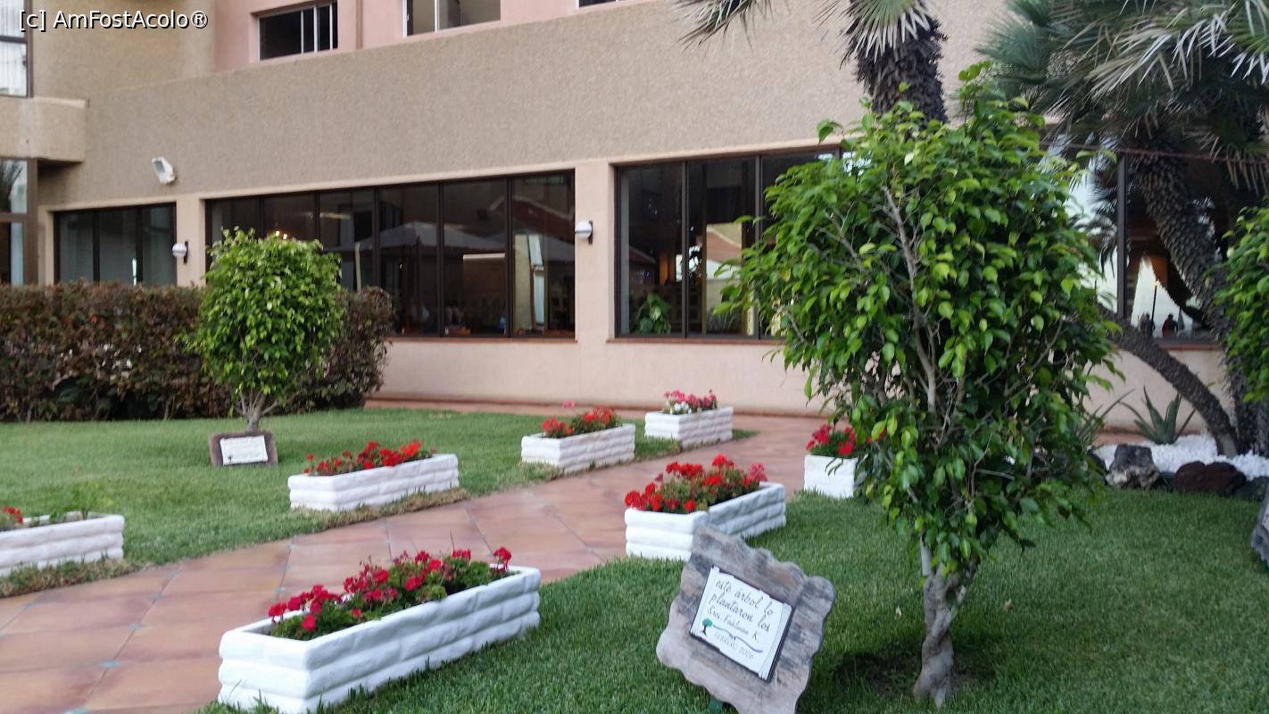 [P15] Vive la Vida - Sol Tenerife - grădina hotelului. Copăceii fuseseră plantaţi de către turişti şi aveau plăcuţe pe care era trecut numele turistului şi anul plantării