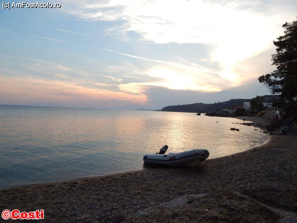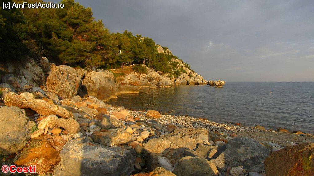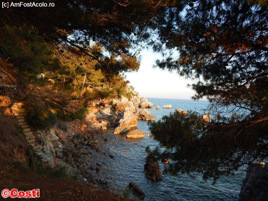 [P31] Imagine de la țărmul mării. Undeva, în mijlocul fotografiei, în spatele copacilor, se află taverna Villa Stasa.