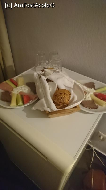 [P02] o bilă albă pt. hotel: cu aceste gustări am fost aşteptaţi, în frigider, întrucât am pierdut prima cină.