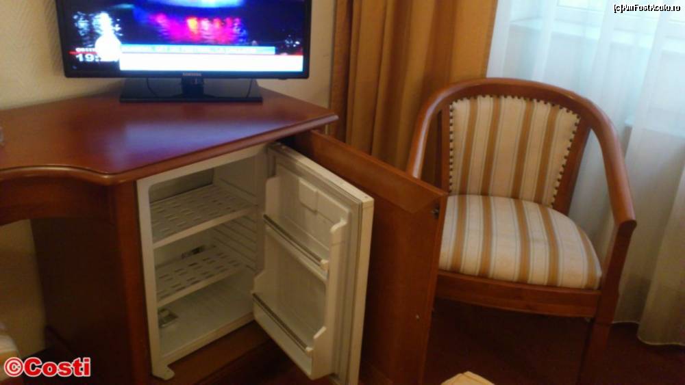 [P14] Din păcate, mini-barul era gol, deşi, culmea, frigiderul funcţiona.