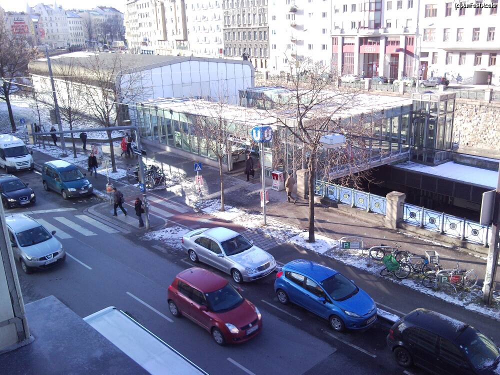 [P19] hotelul Ananas Viena- vedere asupra strazii de la fereastra camerei. Se poate vedea si peronul de la statia de metrou.