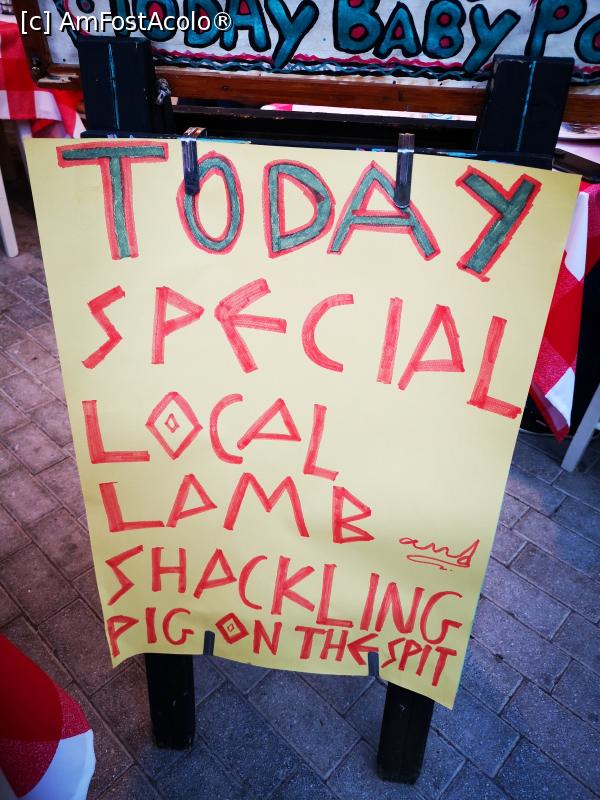 [P08] Taverna O Nikos, Vathi; oferta zilei, miel și porc la rotisor