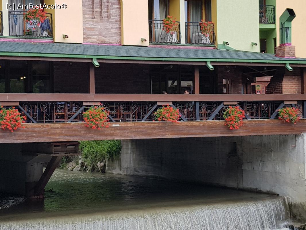 [P02] Terasa plina de flori si râul Olănești trecând pe sub aceasta.