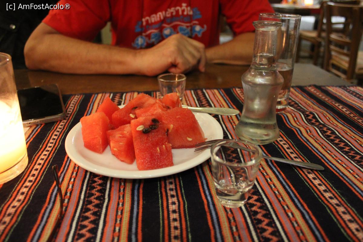 [P31] Rethymno, Restaurantul O Psaras, Raki și pepene roșu din partea casei