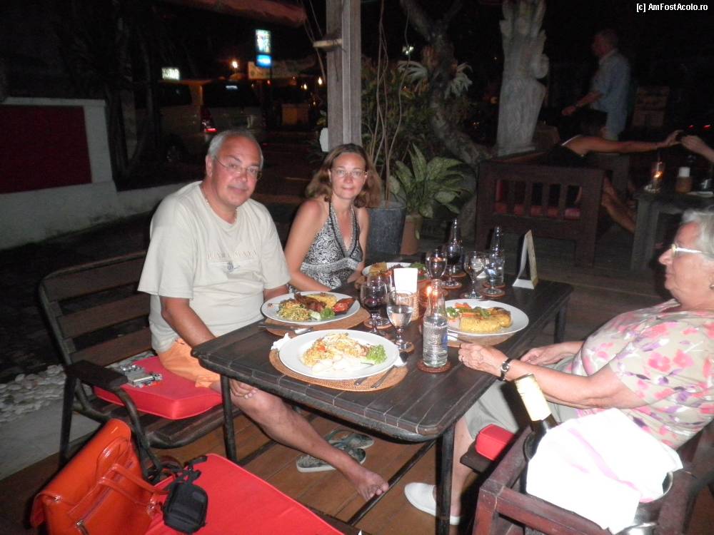 [P72] la masa de cina intr-un restaurant din Sanur,deja capatasem culoarea indonezienilor,dupa cadurile care au fost,care au facut sa ne petrecem timpul mai mult in piscina