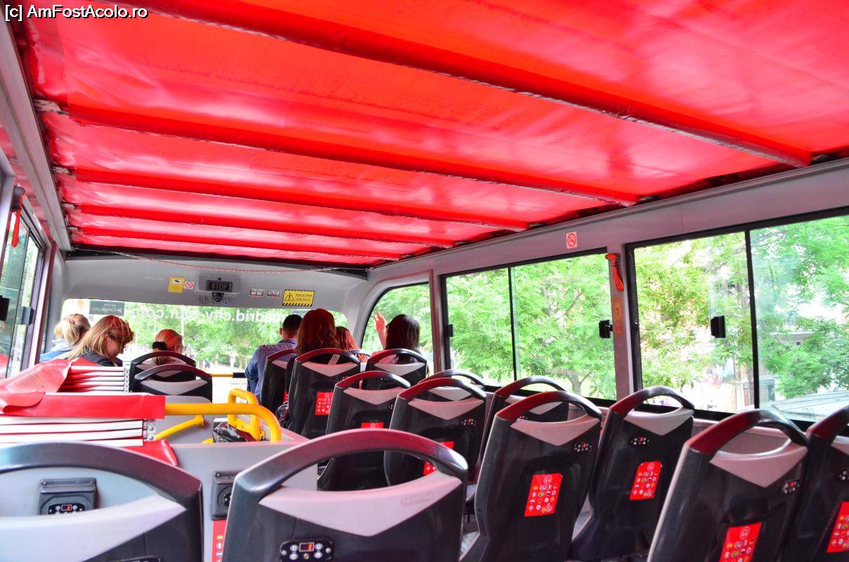 [P03] Madrid City Tour - Traseul 1; la etajul autocarului. O ploaie rapidă a făcut necesară tragerea acoperișului