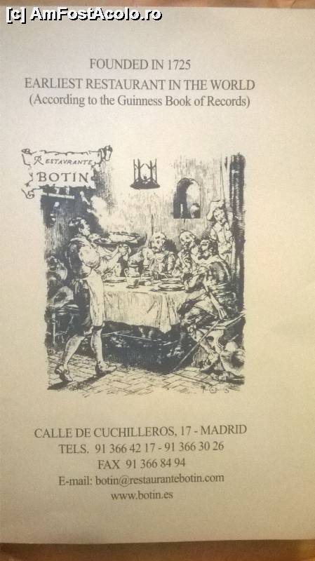 [P02] RESTAURANTUL ,,BOTIN'', CEL MAI VECHI RESTAURANT DIN LUME, 1725, CALLE DE CVCHILLEROS, 17