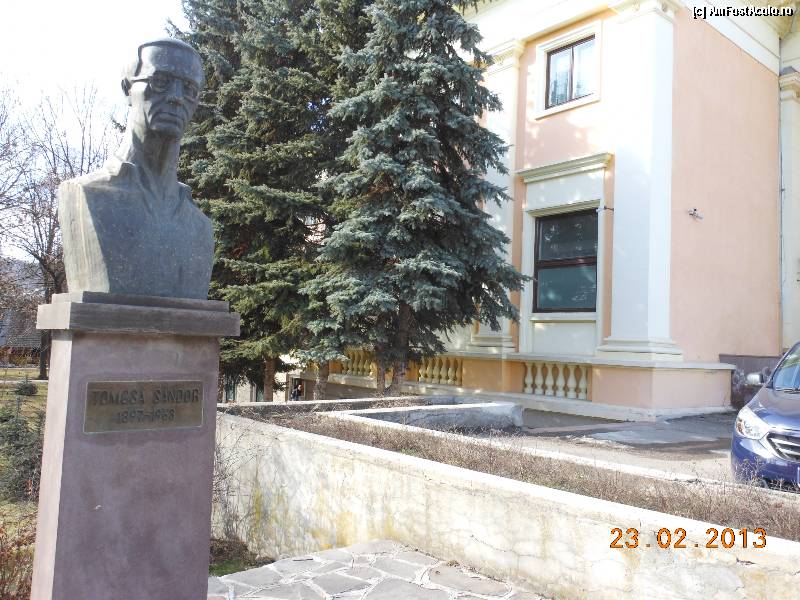 [P71] Odorheiu Secuiesc - Lângă Casa de Cultură, bustul scriitorului şi caricaturistului local Tomcsa Sándor.