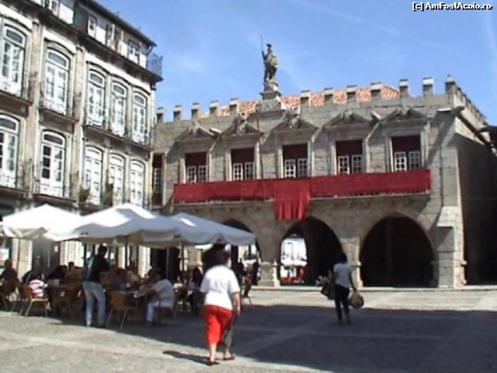[P04] Largo da Oliveira, piaţa principală din Guimaraes: pe clădirea fostei primării se înalţă o statuie care, conform tradiţiei, ar fi o reprezentare alegorică a oraşului.