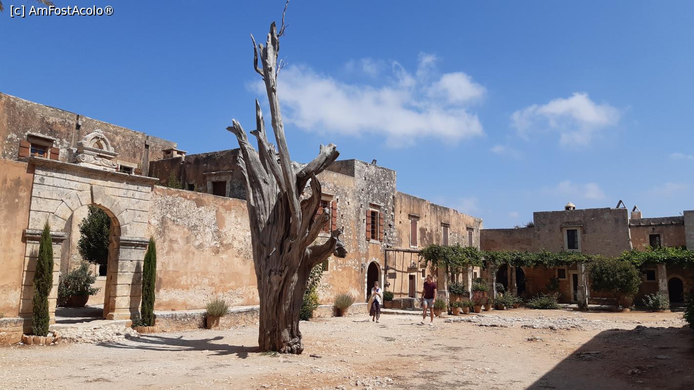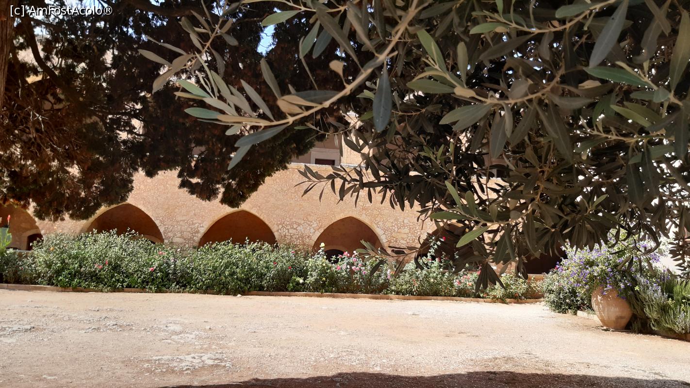 [P63] Mănăstirea Arkadi: intrarea în refectoriu și chiparosul
