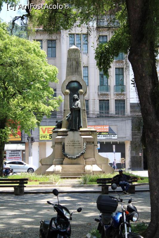 [P49] Santos, Praça Rui Barbosa, Monumentul Omagiu Preotului Bartolomeu de Gusmão, om de știință și inventator la începutul secolului 18, poză făcută din tramvai