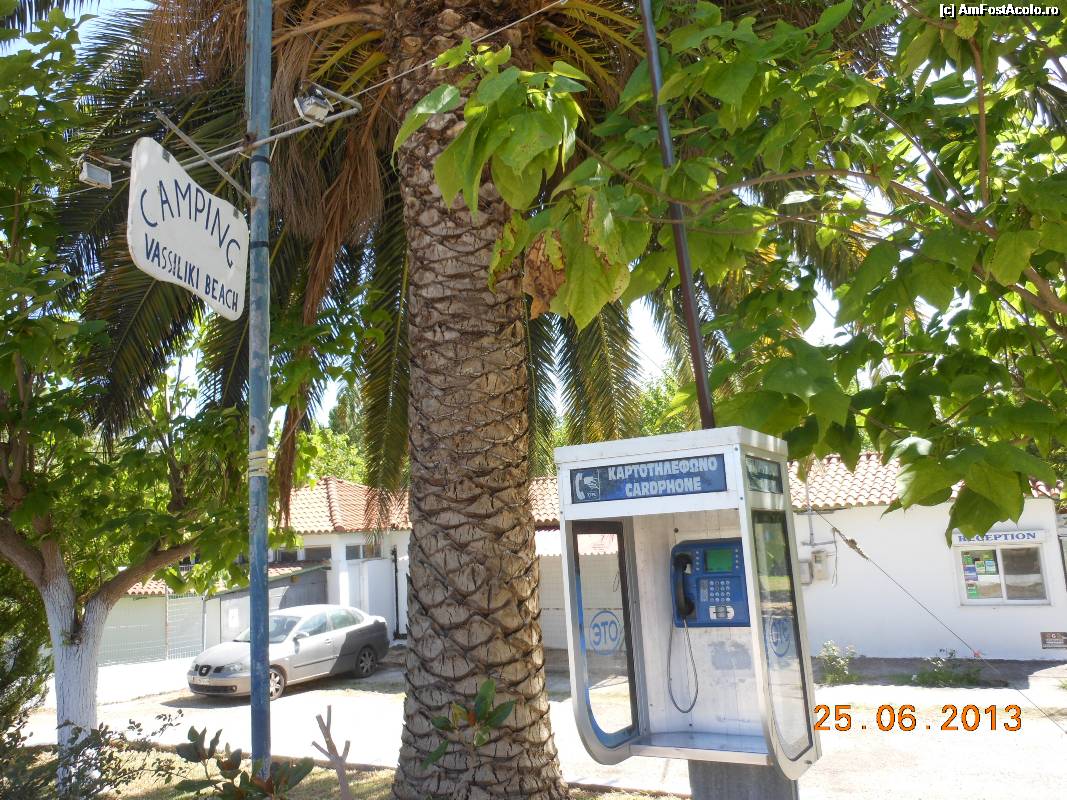 [P06] Vasiliki - Camping Vassiliki Beach cu recepţie şi telefon public la intrare.