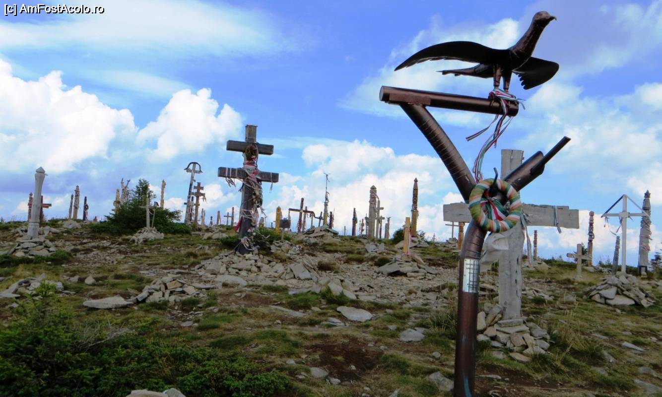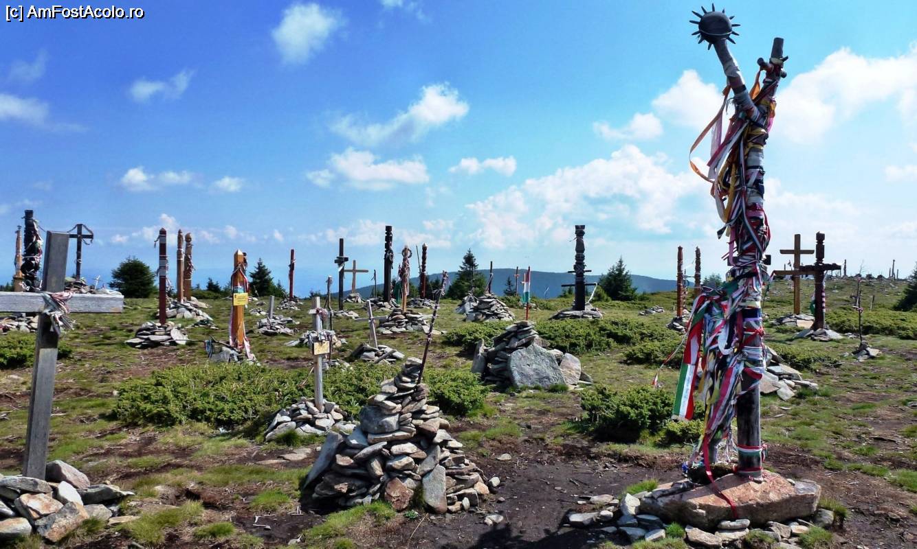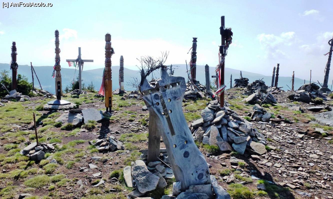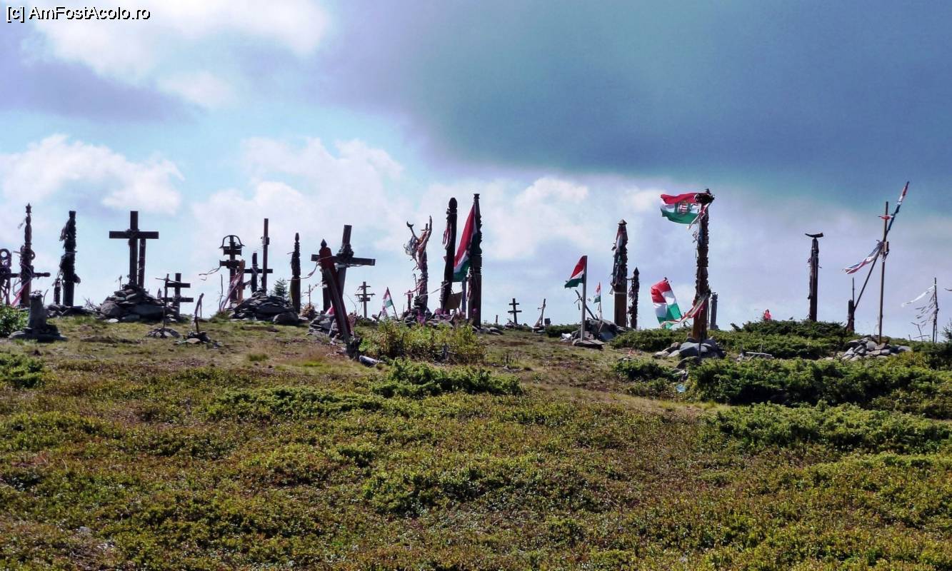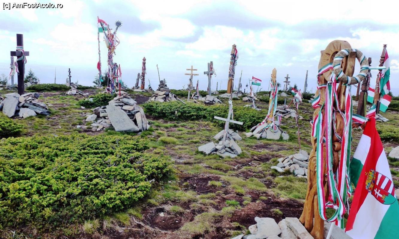 [P19] Stâlpi secuieşti, Pasărea Tur, cruci şi multe alte simboluri religioase şi naţionale maghiare în vârful Harghita-Mădăraş
