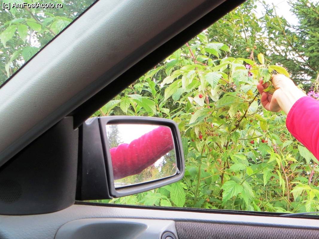 [P28] Zmeură din abundenţă în zona craterului Vârghiş (înainte de staţiunea Harghita-Mădăraş). Nu este necesar să cobori din maşină pentru a culege zmeura!