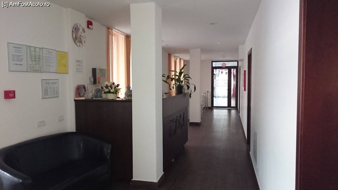 [P06] Receptia vilei. Doar aici am vazut o persoana, care a stat cuminte dupa pupitru. Din personal am mai vazut doar la plecare cand am predat. In fata este intrarea in restaurant.