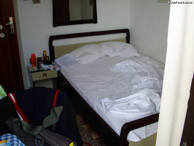 [P15] Patul si noptiera (in care cei cazati inaintea noastra nu prea incapusera) se aflau la o "latime de usa" distanta de baie.