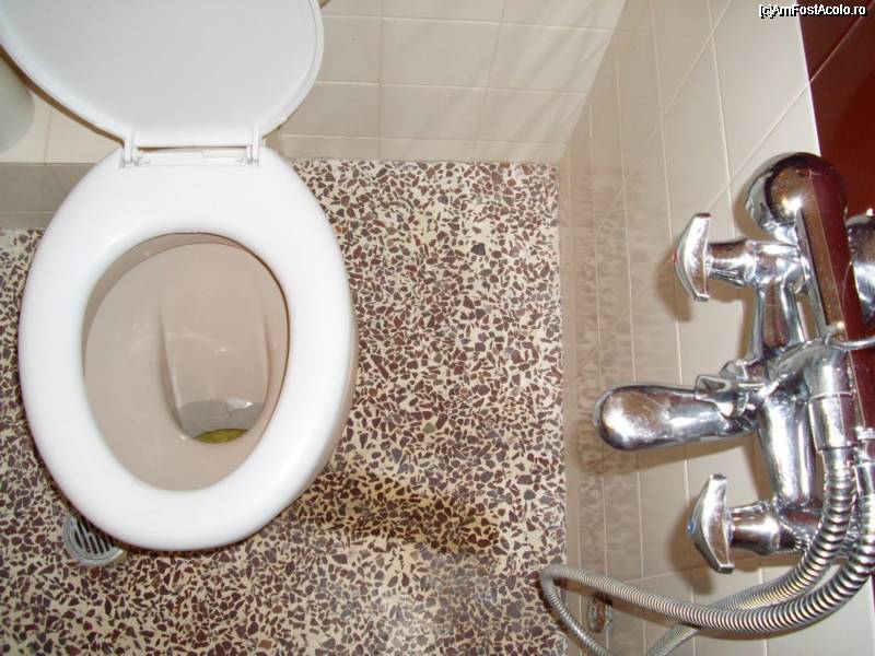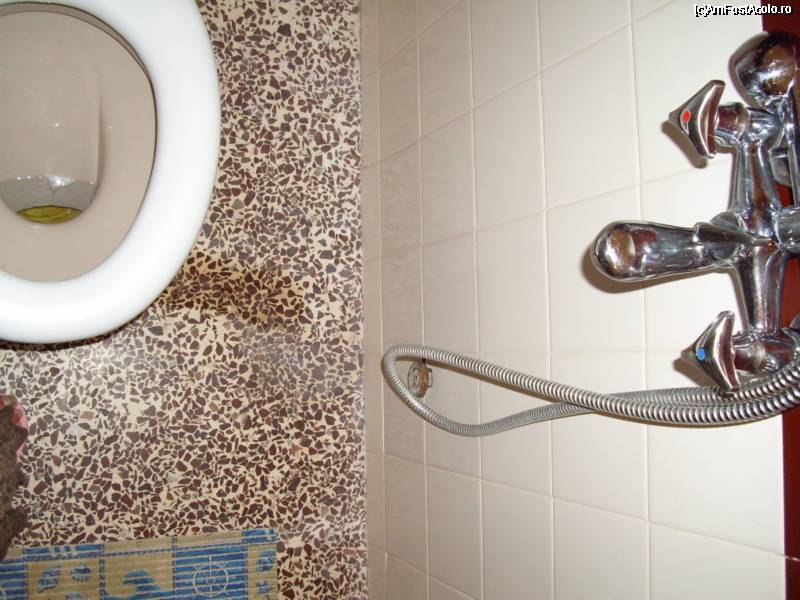 [P05] Cand pornea dusul se stropea toata baia. Probabil ca, ingenios, arhitectul s-o fi gandit la o baie "3 in 1": stand pe wc, puteai in acelasi timp sa faci dus si sa te speli pe dinti!