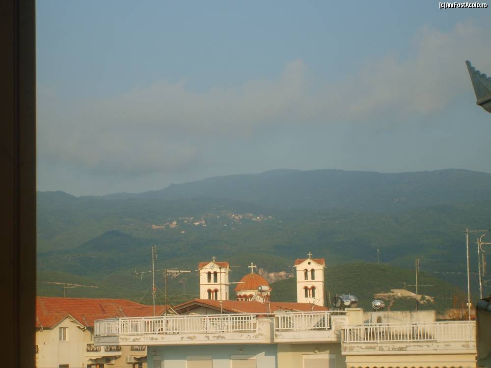 [P16] Turlele bisericii ortodoxe di Nei Pori, vazute din balconul camerei.